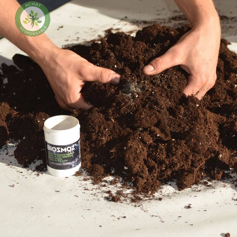 BiosmoZ est doté de propriétés exceptionnelles qui entrainent une importante capacité d’absorption des solutions aqueuses (engrais). Il amplifie, la production racinaire, la croissance et la floraison.
